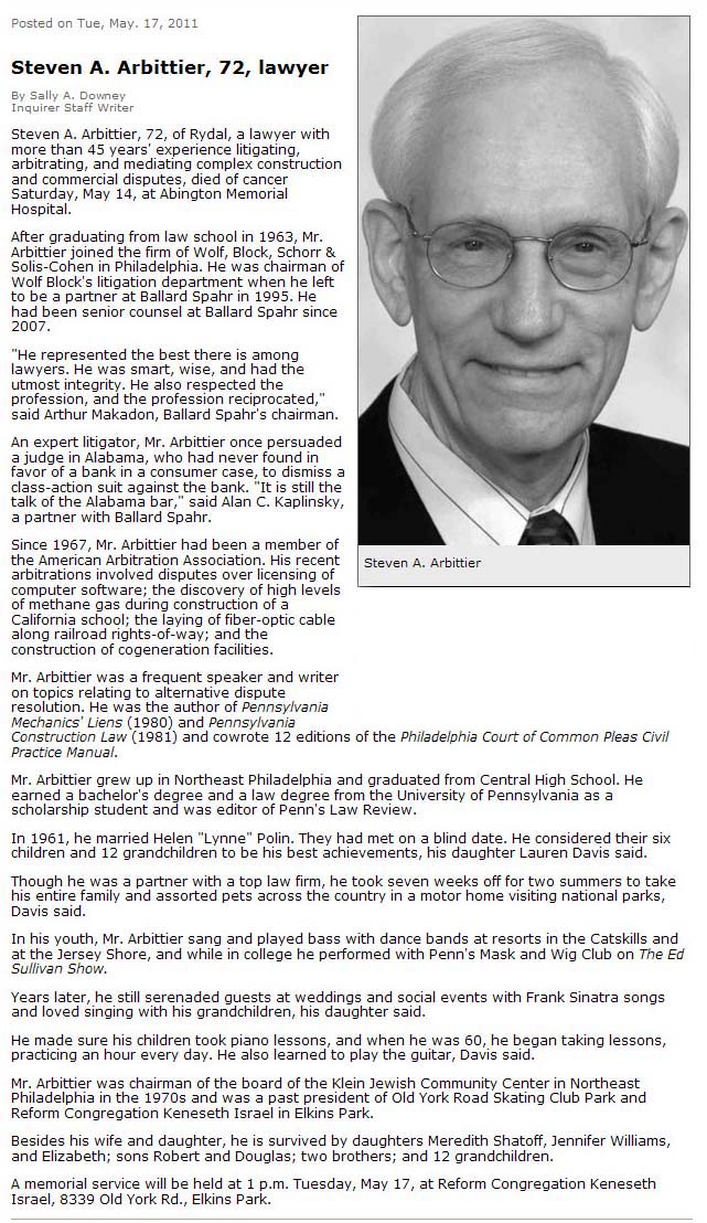 Steven A. Arbittier (May 14, 2011) [OBIT]